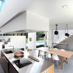 La vision architecturale de l’atelier Alain Chauvet est caractérisée par le rapport à la lumière, l’organisation spatiale et le dialogue ou- vert entre l’intérieur et l’extérieur. De nombreuses ouvertures rythment les façades de bâtis aux lignes contemporaines pour conserver les sensations d’une vie proche de la nature, favoriser au maximum l’entrée de lumière naturelle et restituer un sud splendide et paisible dont rien ne vient troubler la sérénité.