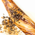 Lorsque j’imagine un plat, je commence par définir une trame aromatique qui me permet de créer une harmonie de saveurs équilibrées. Une fois cette base établie, je travaille sur les textures et l’esthétique du plat pour offrir une expérience sensorielle globale. Le séquençage des saveurs est essentiel dans mes créations, et j’apprécie de jouer avec les opposés : l’amertume et la douceur, l’acide et l’umami, pour bâtir des compositions équilibrées et surprenantes. Par exemple, mon plat « Sur le fil » rend hommage aux premières asperges blanches, où l’amertume florale se marie à la douceur de l’orge et du miel, avec des saveurs iodées du caviar ajoutant une touche umami.