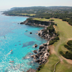 Répartis en deux 9 trous totalement différents, le parcours offre une partie « In land », tournée vers l’arrière pays Bonifacien et une partie « links », exposée au vent et aux embruns, perchée sur les spectaculaires falaises calcaires. Le trou numéro 16 à la renommée mondiale permet de jouer par-dessus une mer turquoise éblouissante.