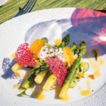 Sa carte enchante par sa générosité et sa convivialité, l’essence même de l’art de vivre provençal. Dominique Frérard ne se démarque pas de ces valeurs, elles l’ins- pirent et se déclinent dans une variation chromatique et gustative puissante.