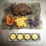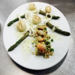 Dans l’assiette, nous retrouvons la générosité des trois garçons avec une cuisine « maison » sublimant les produits locaux. Ici, pas de menu, l’ardoise évolue en fonction des arrivages des fournisseurs locaux et de la pêche du jour.