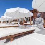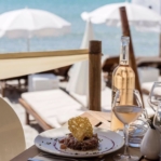 Afin de parfaire ce moment, côté restauration, le chef Stéphanie Ruelle excite nos papilles avec une cuisine ensoleillée directement originaire de la Méditerranée. Depuis la large terrasse, face à la mer, profitez d’un instant gourmand au sein d’un établissement à la décoration simple et épurée mélangeant les éléments : le bois chaud, la canisse et le mobilier signé Philippe Starck.
