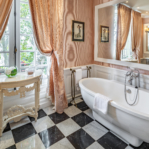 À l’intérieur, Charles Montemarco décorateur a composé une décoration au style 18ème et 19ème empreinte d’un esprit de voyage. Il nous fait littéralement voyager à travers le temps. L’ambiance est intimiste, chaleureuse et pleine de romantisme. Des salons vous attendent pour dîner ou vous détendre dans un cadre idylique. Un esprit boudoir où statuettes, tableaux et opulentes étoffes de soies nobles diffusent une atmosphère feutrée et mystérieuse. Une élégance qui épouse avec harmonie la cuisine savoureuse de Christophe Gavot, servie sur la terrasse lors du retour des beaux jours.
